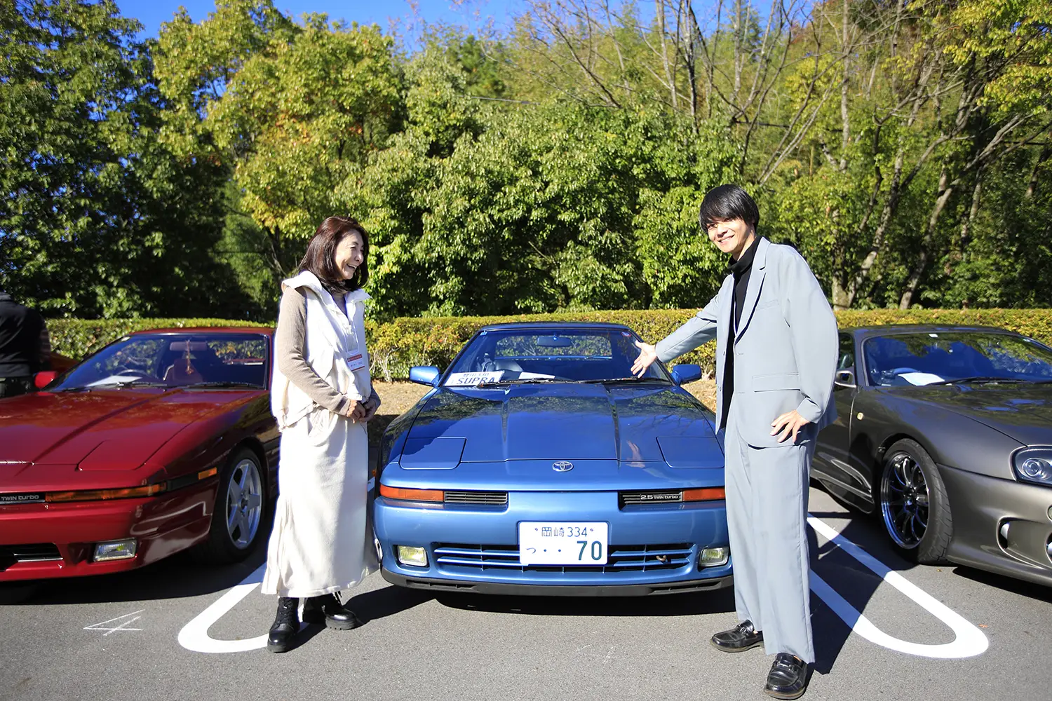 一方、1991年型ブルーメタリックの「70スープラ」のオーナーさまである息子・サトキさんは、「母が昔80スープラに乗っていたので憧れがありました。私が選んだのは高市総理も愛した70スープラ。リトラクタブルヘッドライトもロングノーズもかっこいい」と話し、母のチエノさんも「英才教育の賜物です(笑)子どもの頃から助手席に乗せていたので影響があったんでしょう。今では逆に息子からいろいろと教えてもらっています」と微笑みます。