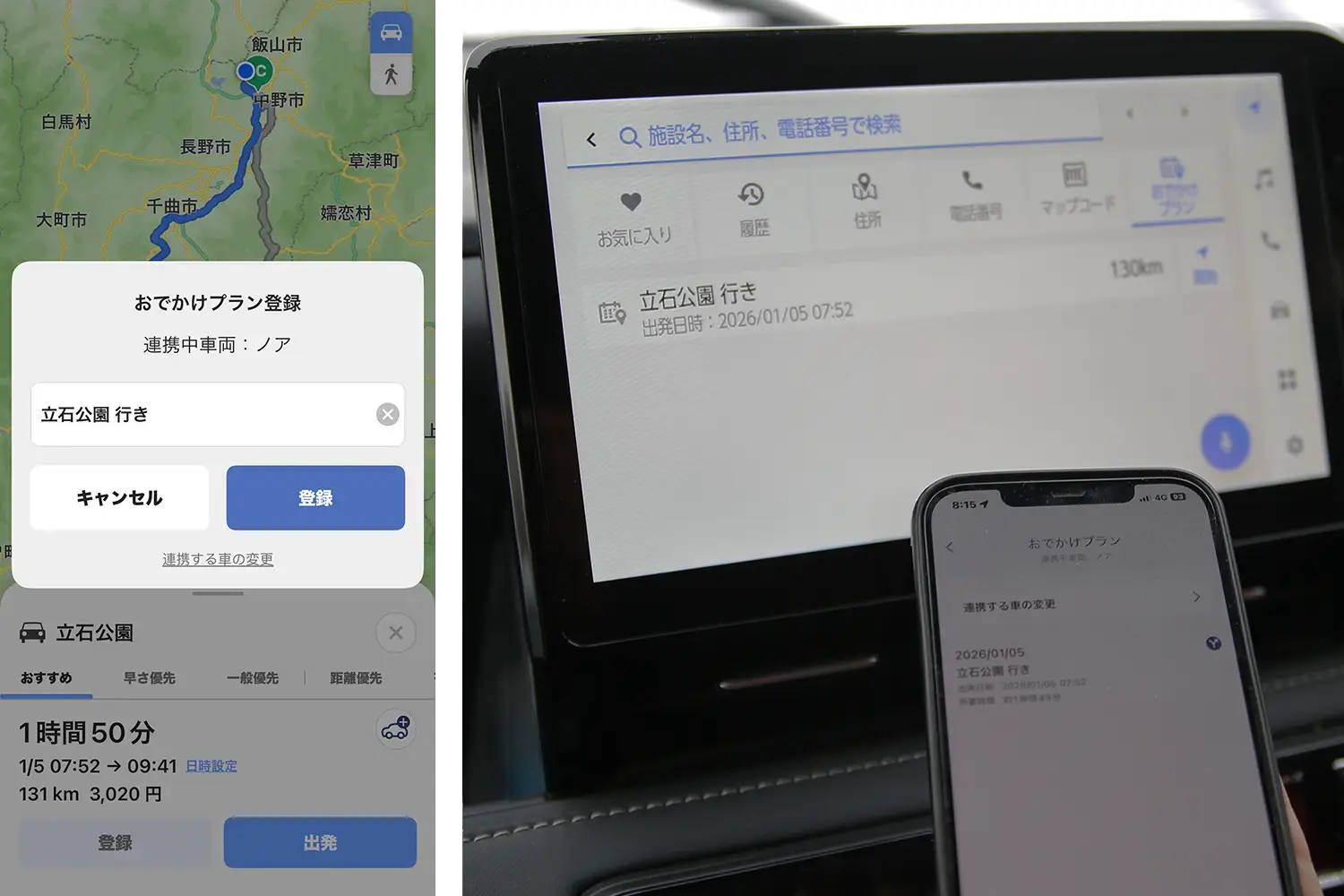 また、「moviLink」にはスケジューラがあり、カレンダーで日付や出発地、目的地を入力すると自動的にルートを検索し、おでかけプランに登録されます。さらに、Googleカレンダーなど外部のスケジュールアプリと連携することも可能です。「コネクティッドナビ(T-Connectスタンダード(22))」は月額税込880円/年払い9,680円ですが、「T-Connect」の基本料金同様、多くのサービスプランは、新車登録から5年間は無料です。