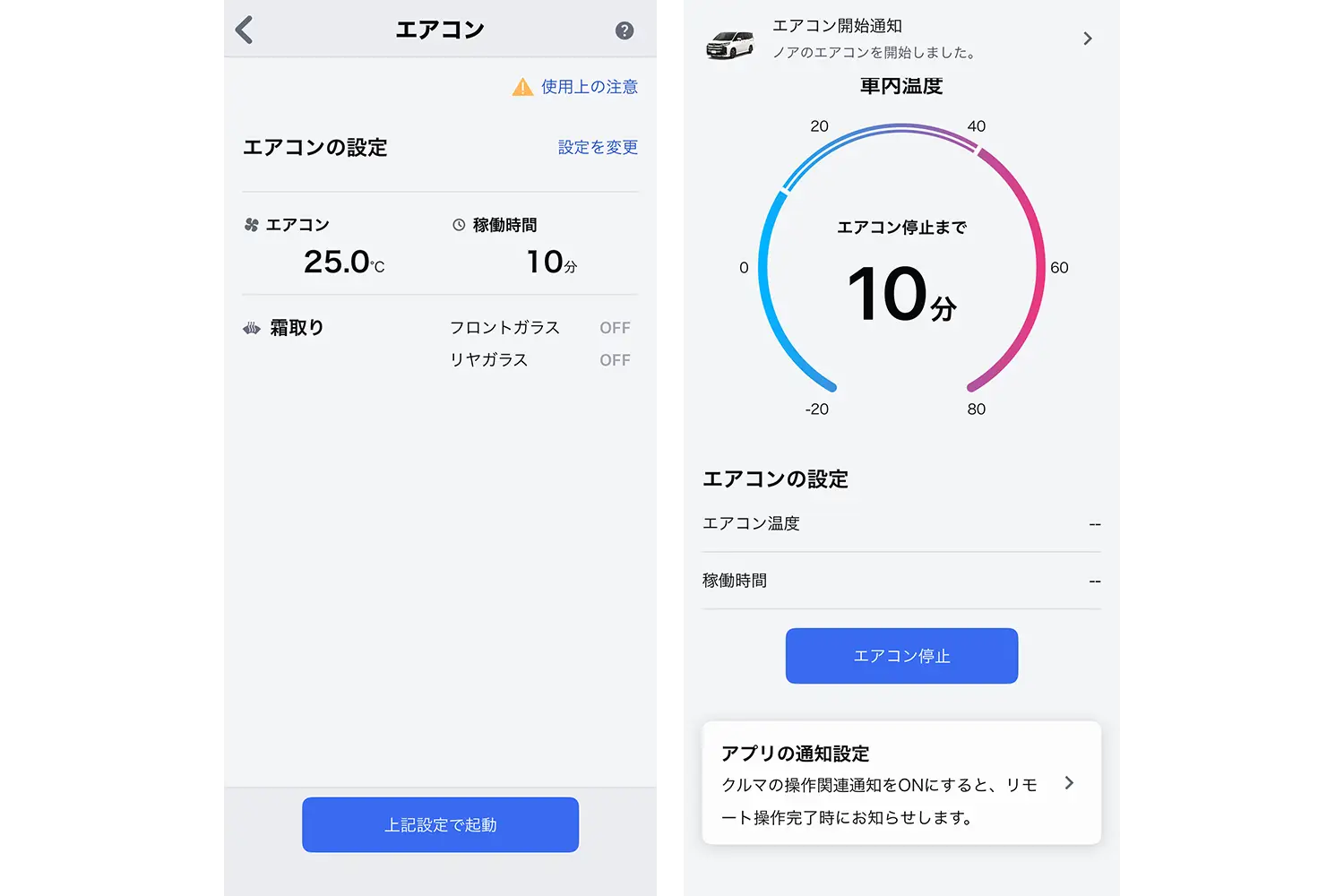 エアコンの稼働時間は10分か20分のいずれかで、その時間が経過すると、自動的にエアコンがストップするので安心です。設定した時間前にエンジンを始動すれば、エアコンが停止することはありません。料金は月額税込220円です。