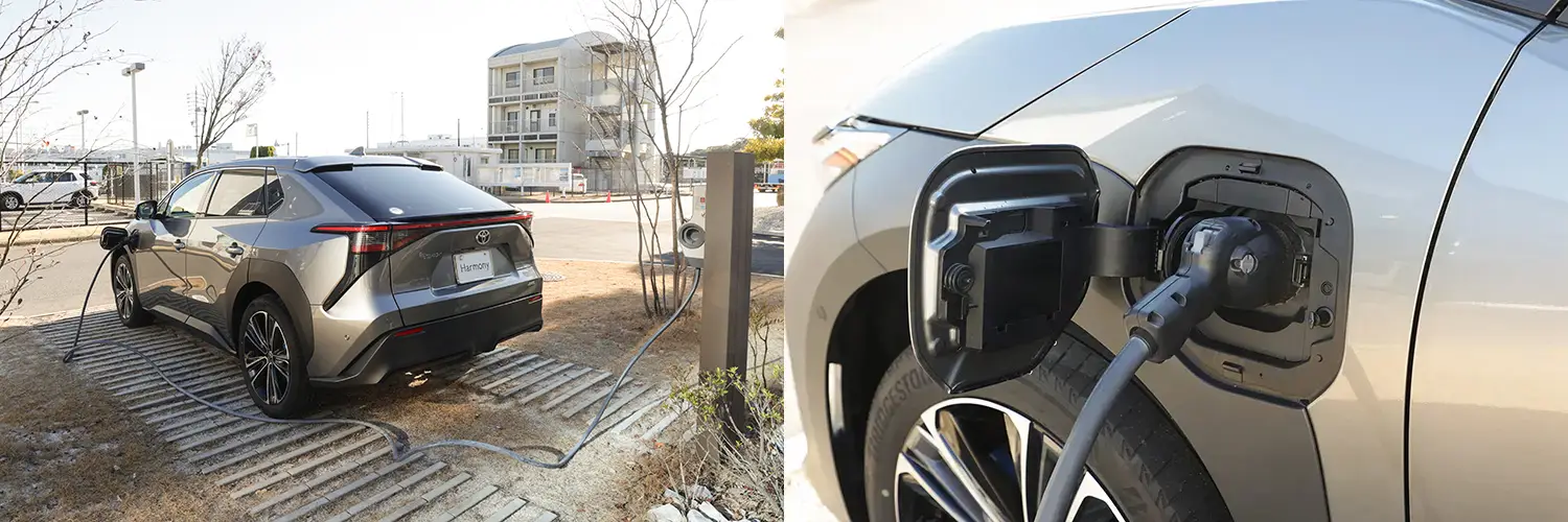 ガソリンを使わず、バッテリーに充電した電気だけを使ってモーターで走行するのが「BEV」です。代表例が2025年に改良モデルが発売されたトヨタの「bZ4X」。かつては「航続距離が短い」「充電場所が少ない」といった課題がありましたが、技術進歩とインフラ整備により、今では日常使いから長距離移動まで視野に入る存在になっています。災害時には大容量バッテリーを非常用電源として活用できる点も大きな特長です。