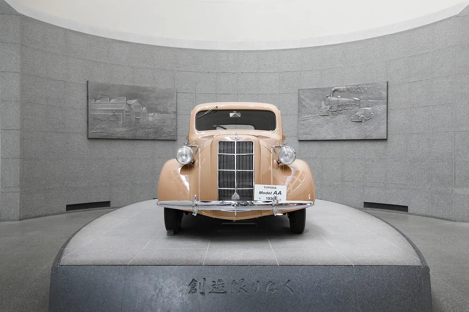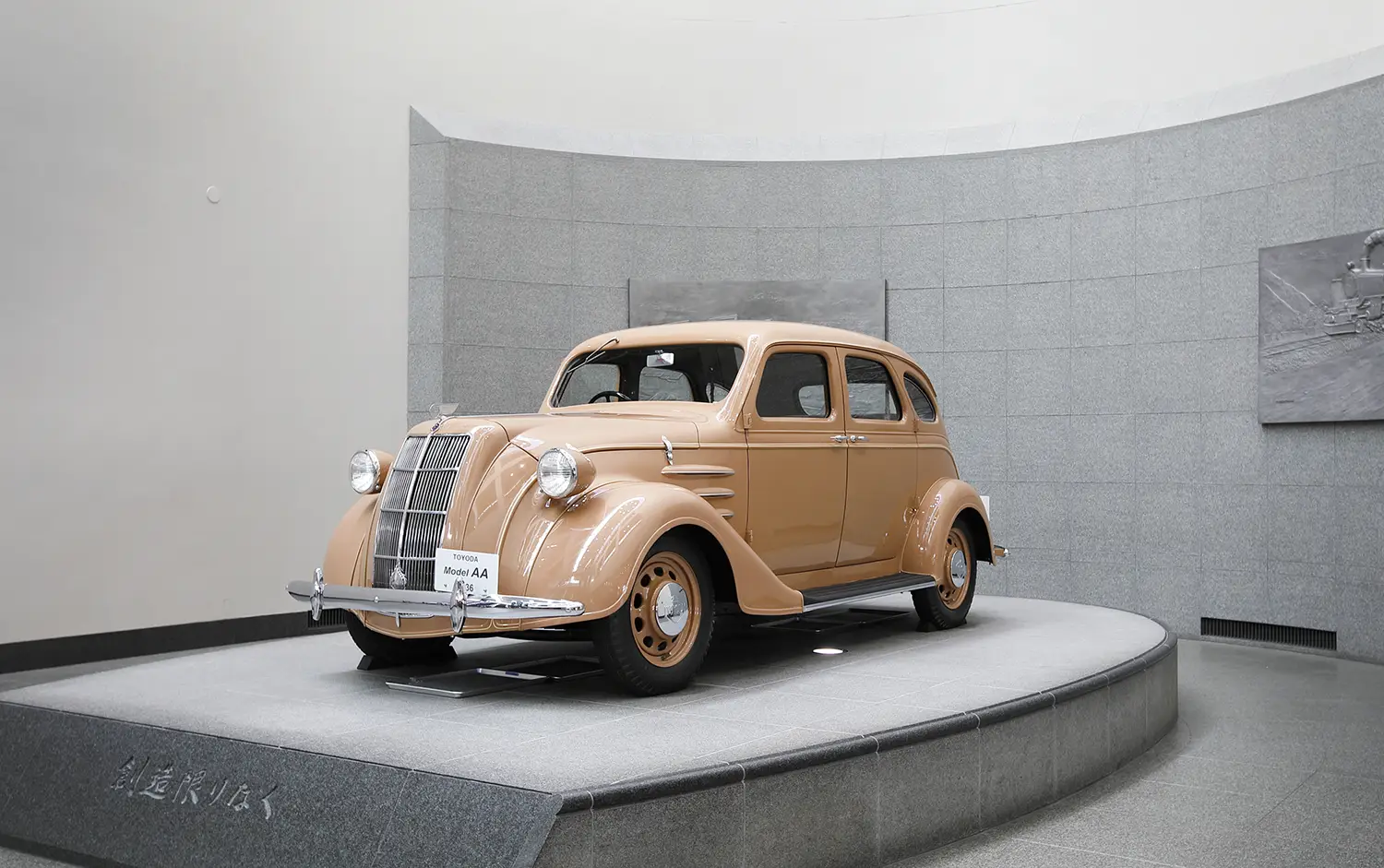 そして、ひときわ目を引くのが、豊田自動織機製作所が1936年に完成させたトヨタ初の量産乗用車「トヨダAA型乗用車(レプリカ)」です。純国産への強い意志を感じさせる流麗なフォルムは、「デ ソート エアフロー シリーズ SE」などの影響を受けながらも、日本の自動車産業の原点を今に伝えます。