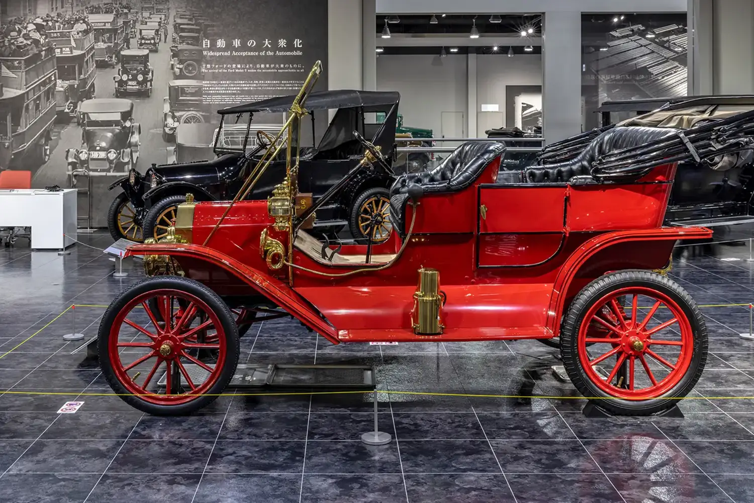1909年製の「フォード モデルT ツーリング」は、ヘンリー・フォードが流れ作業による大量生産を実現し、クルマを一部の富裕層のものから誰もが手にできる存在へと広げた、時代を変えた一台です。