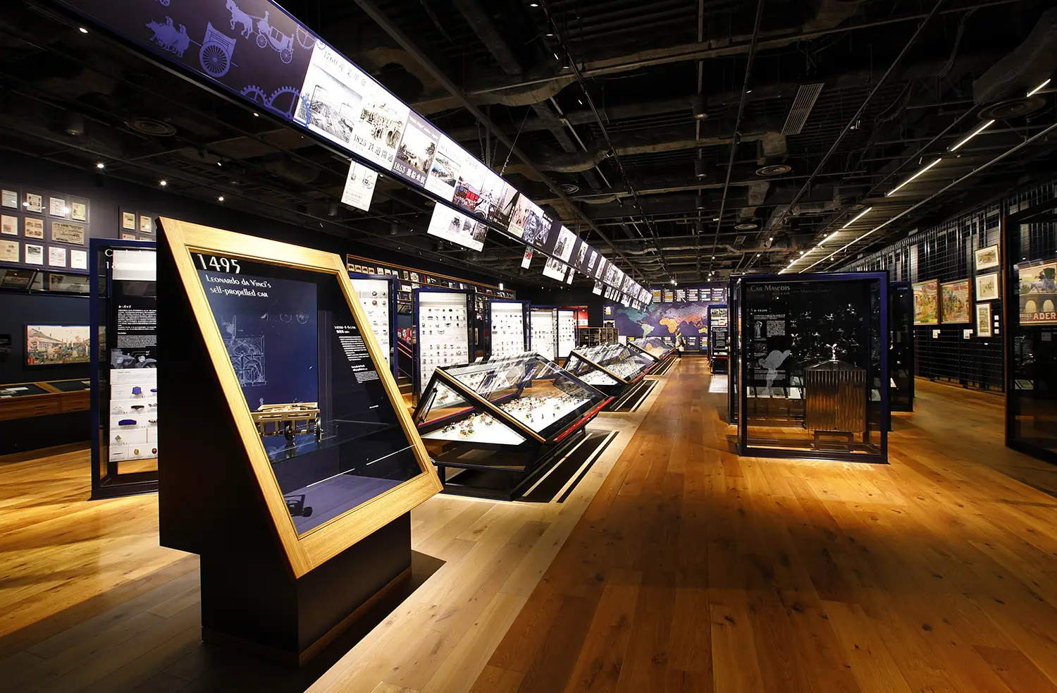 このフロアには自動車産業史常設展示「クルマづくり日本史」も設けられています。動く年表、4面の大型スクリーン、タッチパネルなどを駆使した包括的な日本の自動車産業史の常設展示は、世界でも例の少ない先進的な試み。70年に及ぶ日本のクルマづくりの軌跡が、鮮やかに甦ります。
