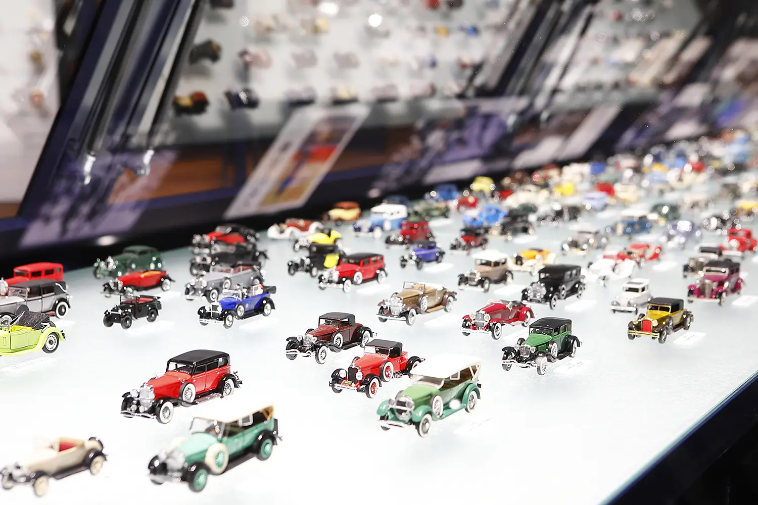 文化館2階の「クルマ文化資料室」では、「移動は文化」をテーマに200,000点以上の資料から約4,000点を展示。約800台のミニチュアカー(1/43模型)が時代順に並ぶ大型ケースは圧巻で、実車ではすくいきれない時代の流れを俯瞰できます。