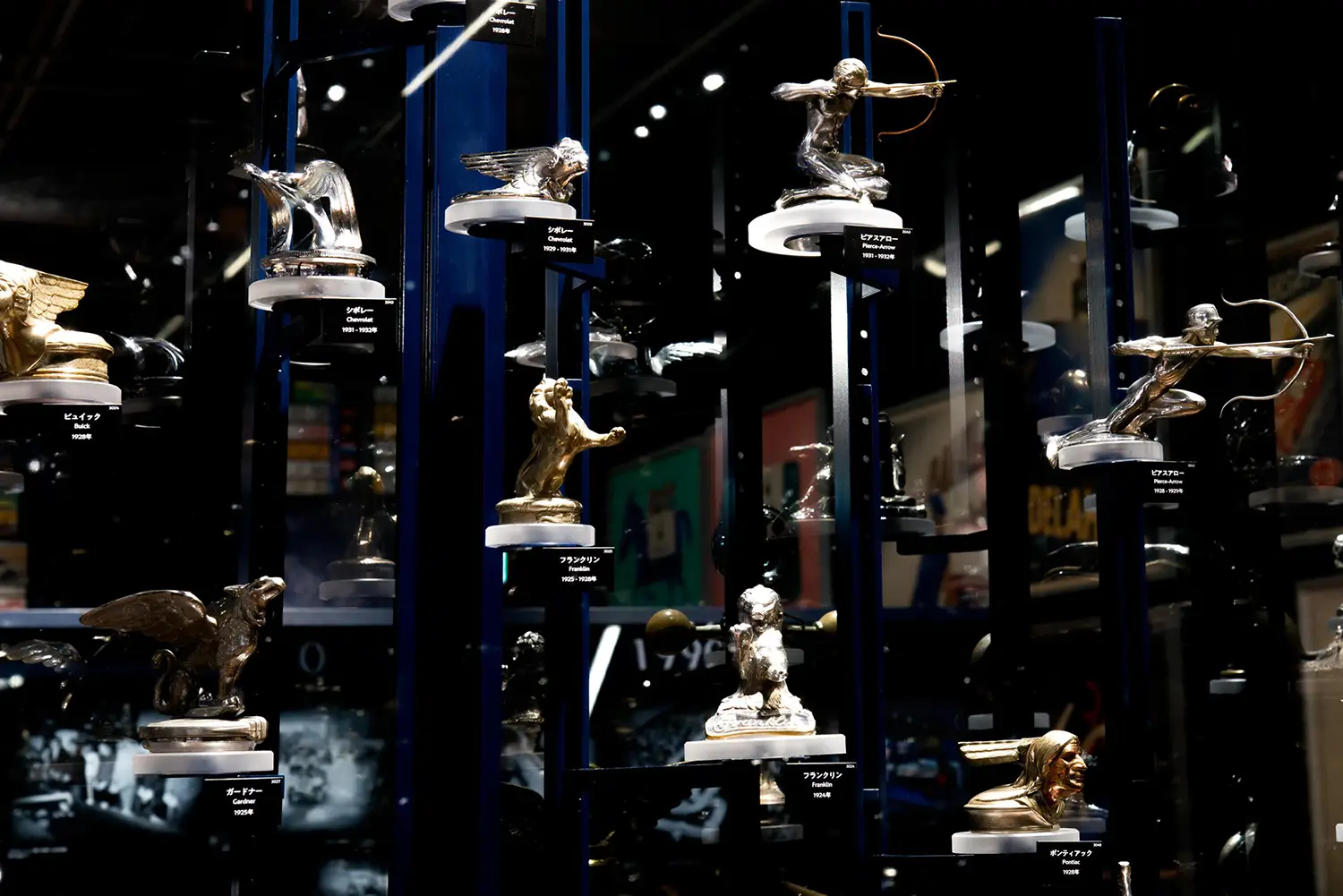 フランスのガラス工芸家ルネ・ラリックが製作したガラス製カーマスコット全29種類の常設展示は世界でも珍しく、光を受けて輝くその造形は、クルマが美の媒体でもあった時代の粋を伝えています。