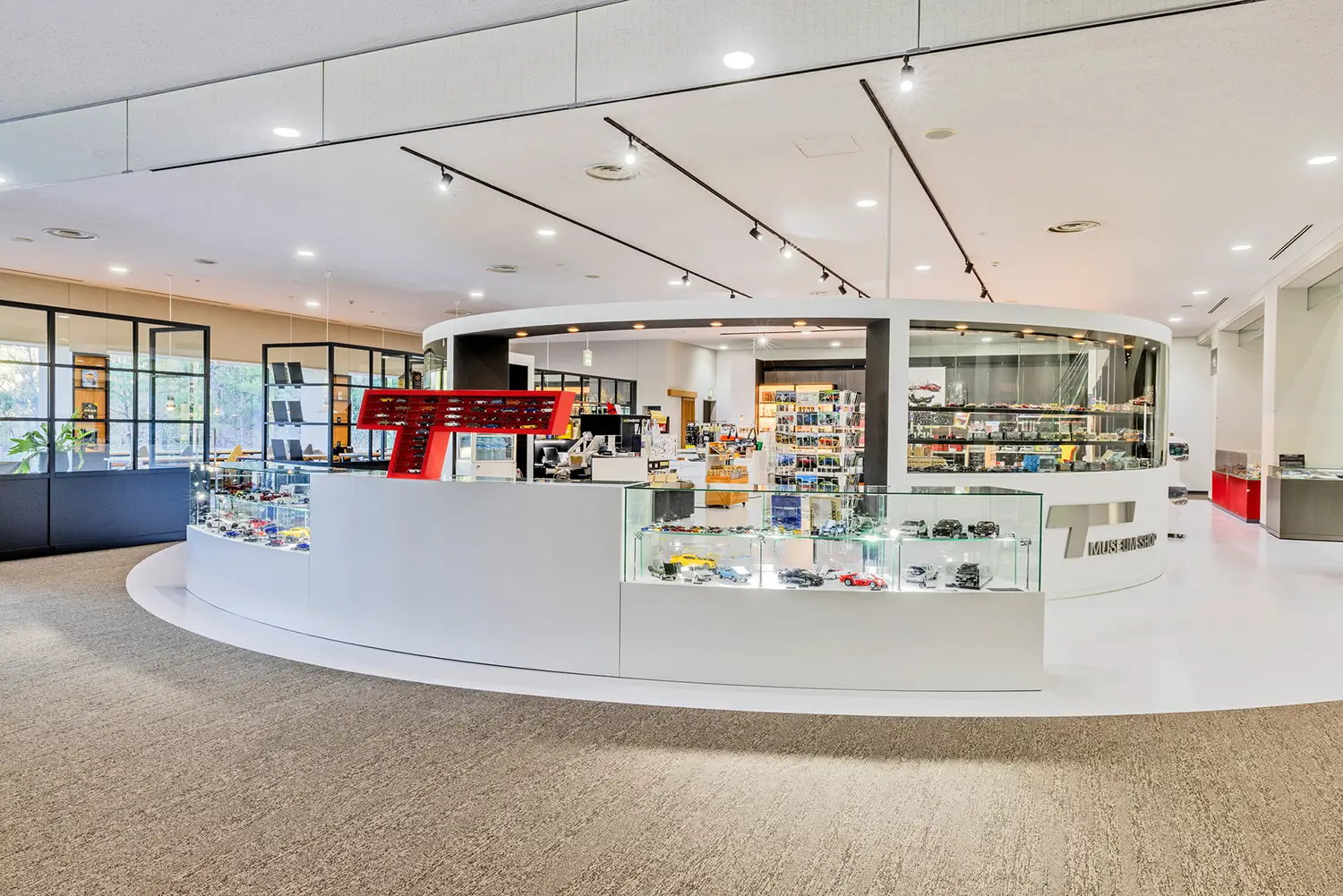 文化館1階のミュージアムカフェ「CARS & BOOKS」は、こだわりの名店のコーヒーと紅茶、焼菓子とともに、クルマを新たな視点で楽しめる書籍が並ぶ心地よい空間です。