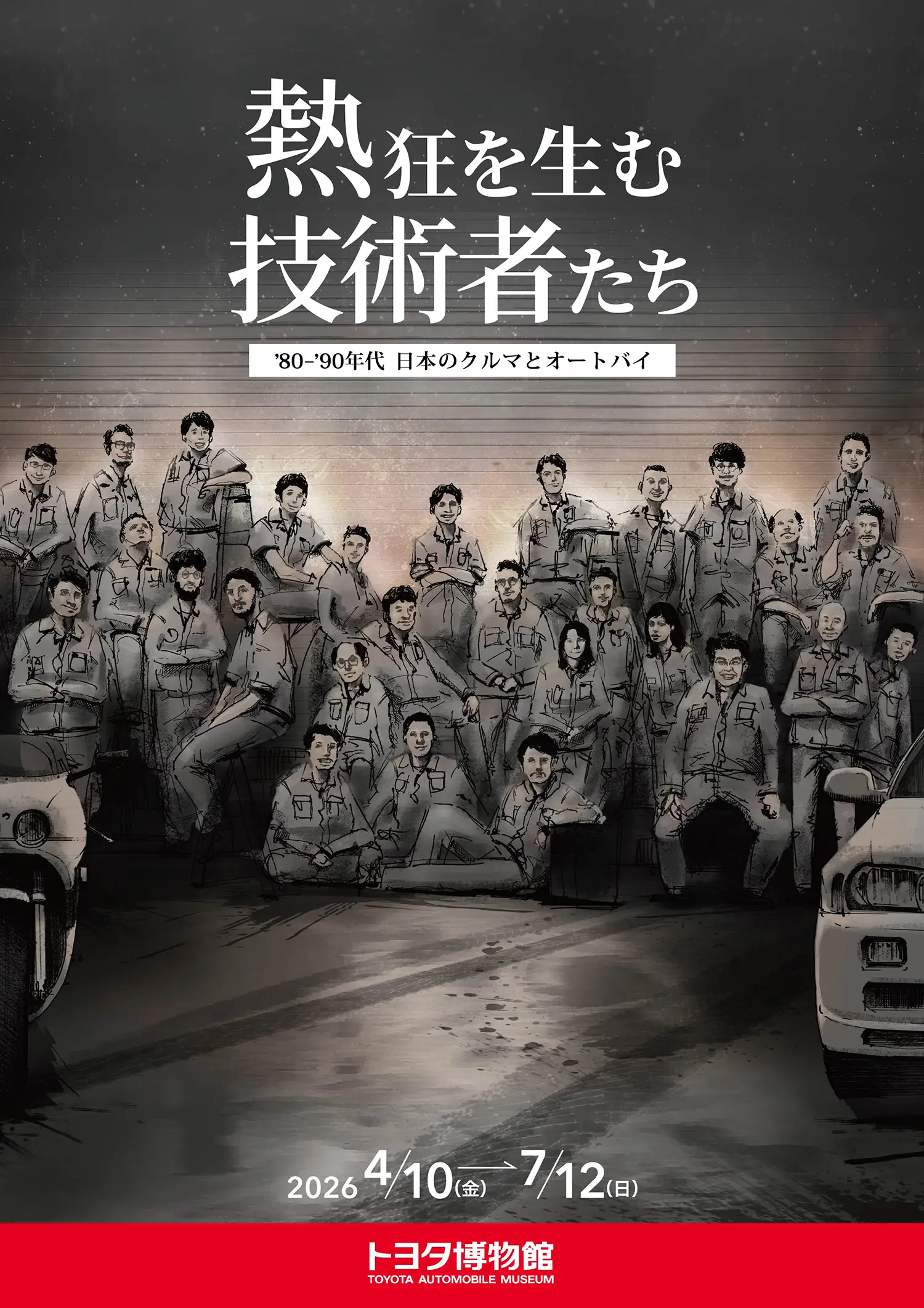1980〜1990年代の日本車をテーマとした企画展の第二弾が、2026年4月10日(金)から2026年7月12日(日)まで、文化館2階 企画展示室にて開催されます。この時代の若者を熱狂させたクルマとオートバイ。その誕生の裏には、「世界に追いつけ」「真の世界一に」と、立ちはだかる壁を前にしても情熱を燃やしつづけた技術者たちの姿がありました。
