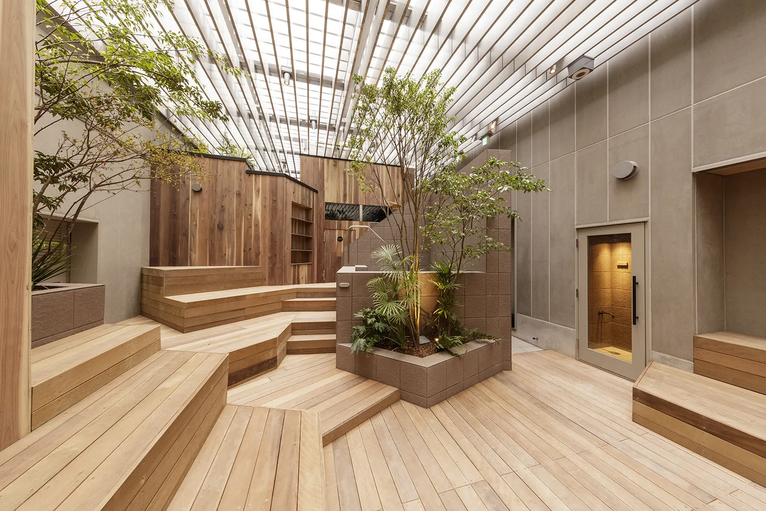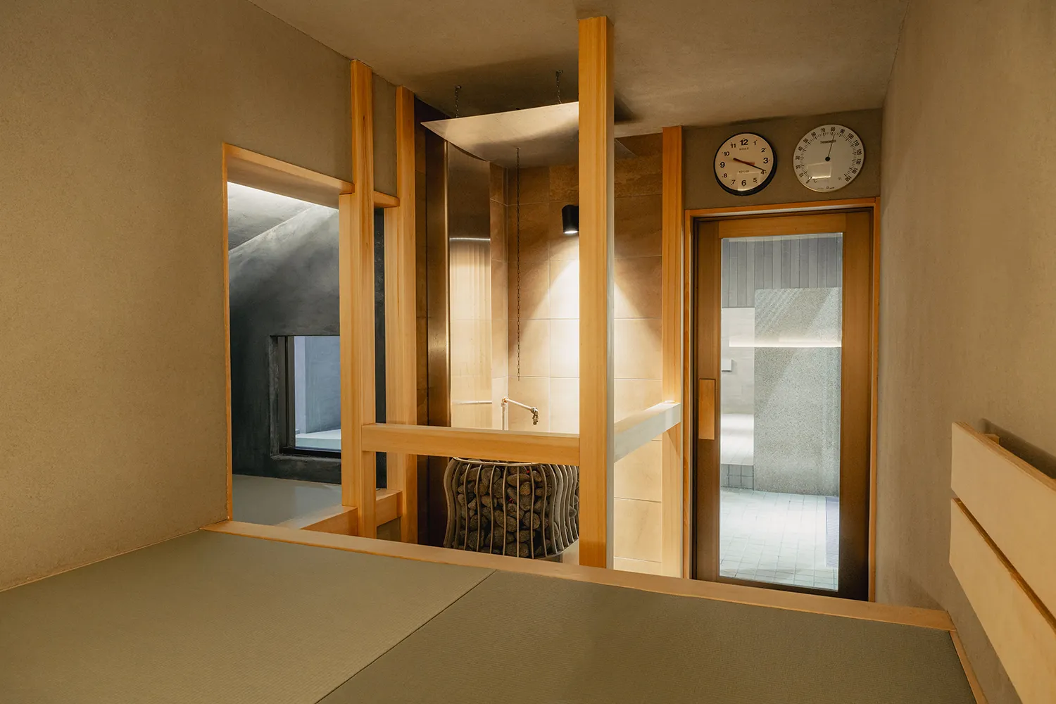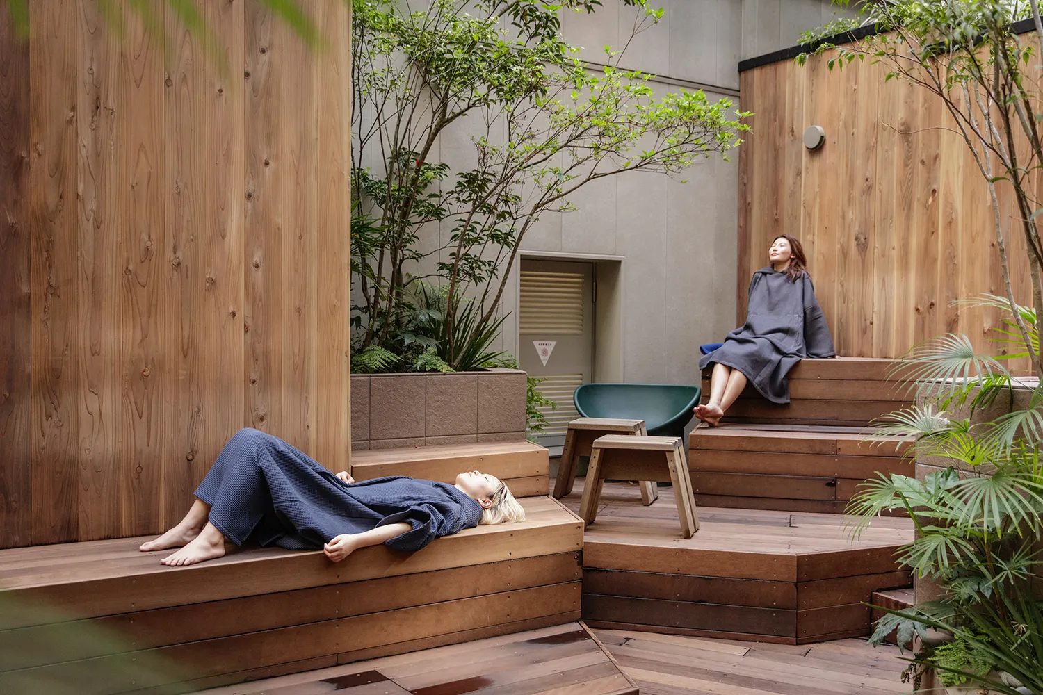 中でも、サウナ室内からそのまま水風呂に飛び込める「川サウナ」は、約16℃の冷水が流れる空間で都市と自然が交差するユニークな体験を提供。高温・多湿の静かな空間で自分自身と向き合える「森サウナ」や、半外気浴エリアに面した開放感あふれる「庭サウナ」では、静と動、孤と社交、それぞれの整い方を自由に選ぶことができます。