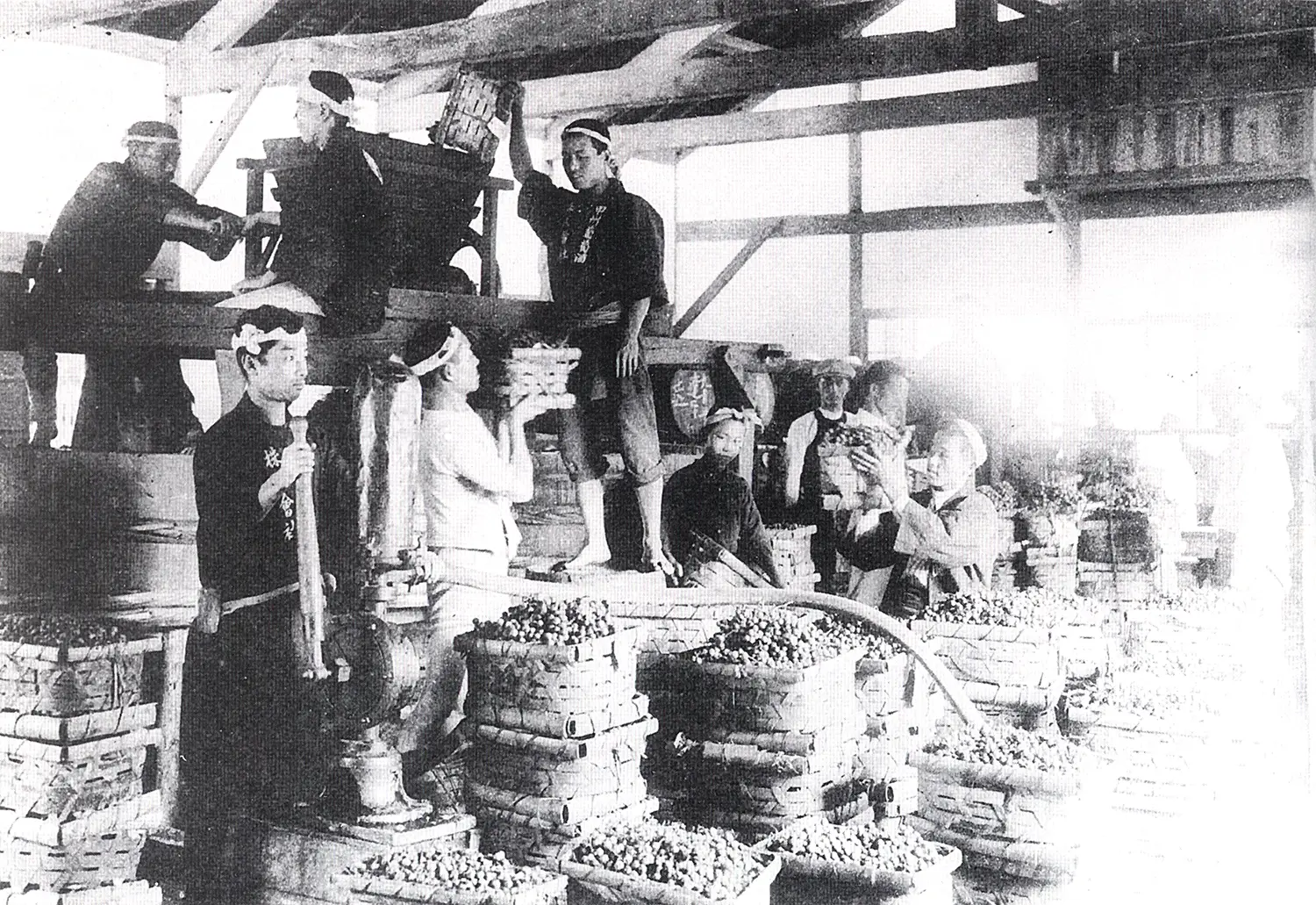 帰国後、大日本山梨葡萄酒会社が解散という憂き目に遭いながらも、日本産ワインの夢を諦めなかった龍憲。「フランスワインがフランス料理に合うように、甲州ブドウが和食に合わないはずがない」。この信念を胸に、地元産の日本固有種「甲州」にこだわり、同社の醸造設備を一部譲り受け、自ら勝沼でブドウ栽培と研究を続けます。そして1891年(明治24年)、ついに現在のまるきワイナリーの前身となる「マルキ葡萄酒」を山梨県勝沼町下岩崎に創設。自宅の醸造所を「土屋第一洋酒店」とし、甲府の常盤町に販売所として「土屋第二商店」を設け、生葡萄酒「第一甲斐産葡萄酒」と甘味葡萄酒「サフラン葡萄酒」の製造・販売を始めました。ここに、現存する日本最古のワイナリーが誕生したのです。