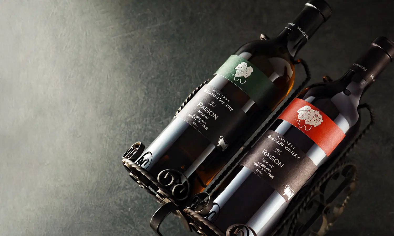 「レゾン」は自社農園「下岩崎ヴィンヤード」でサステナブルに栽培されたブドウのみを使用するフラッグシップモデル。甲州を用いた白と、赤はマスカット・ベーリーAとメルローのブレンド、いずれも軽やかさと華やかさのバランスが取れた端正な味わいが特徴です。「白は蛤の酒蒸しなどの魚介料理に、赤は醤油や味噌と相性がよく素朴な煮物などに合います」とは同社広報担当の青木祥氏。