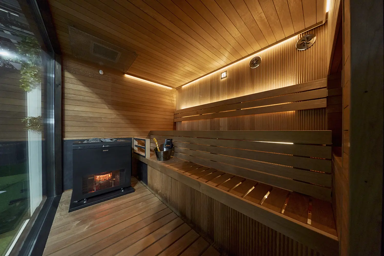 両者の協働によって、燃焼によって生じる熱と水蒸気をサウナルーム内に直接取り込み、煙突を必要としないサウナの設計が、現実のものとなってきました」