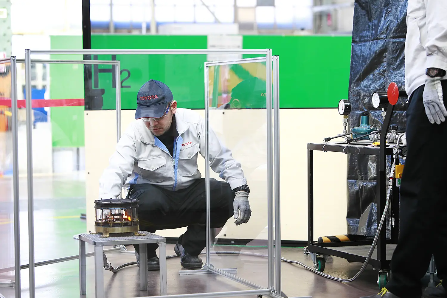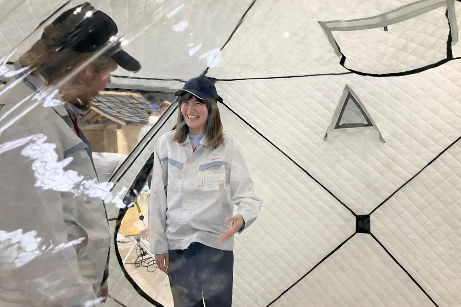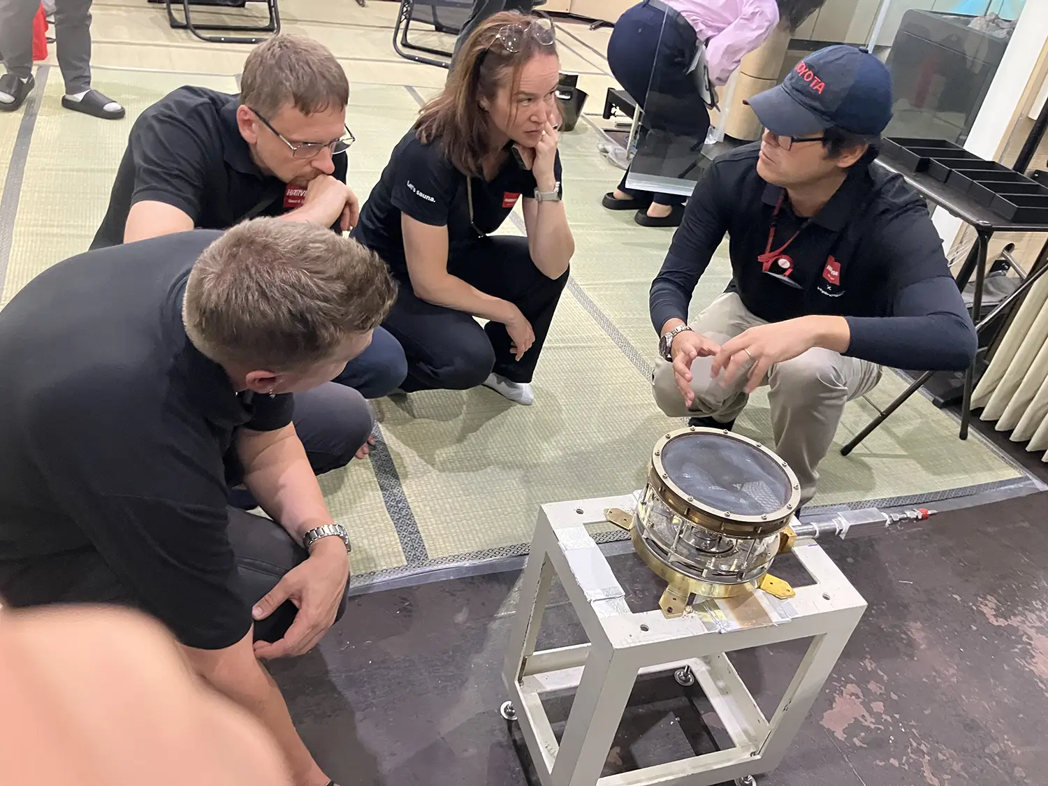 フィンランドは、トヨタのラリー開発拠点が置かれる縁の深い国でもあります。Cefmofは、ユバスキュラ市、TOYOTA GAZOO Racing World Rally Team(TGR-WRT)、トヨタ・モビリティ基金によって2024年に設立された団体で、カーボンニュートラルの達成と持続可能な社会の実現を目指し、人と自然が調和するまちづくりを進めています。そのメンバーが水素調理器の視察に訪れた際、工場内に置かれていたテントサウナに目を留めました。