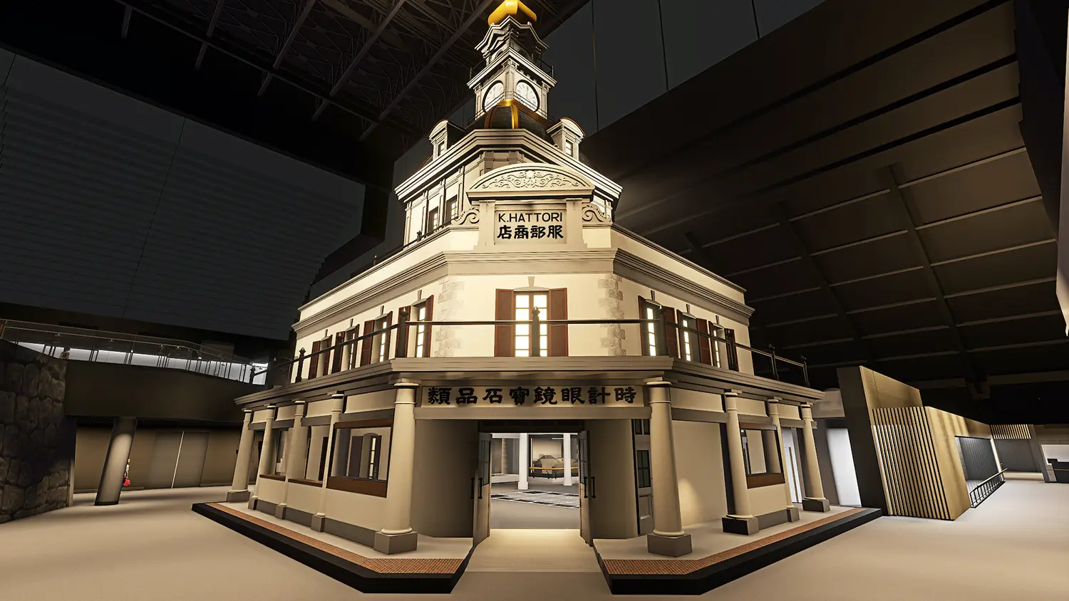 展示内容の刷新も大きな見どころのひとつです。明治の銀座のシンボルとして知られる「服部時計店」を、新たに実寸大で再現。近代化が進む東京の象徴的風景を、空間スケールで体感できる展示となります。