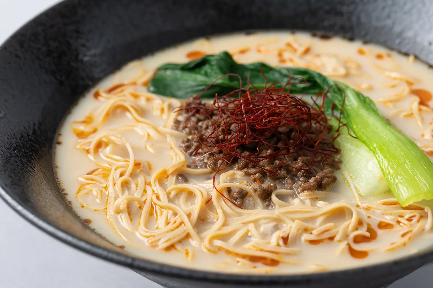 「湯葉に加えて、高オレイン酸大豆の豆臭さが少ない特長を活かした商品ができないかということで、大豆100パーセントでつくる拉麺を考案していただきました」(嶋本氏)