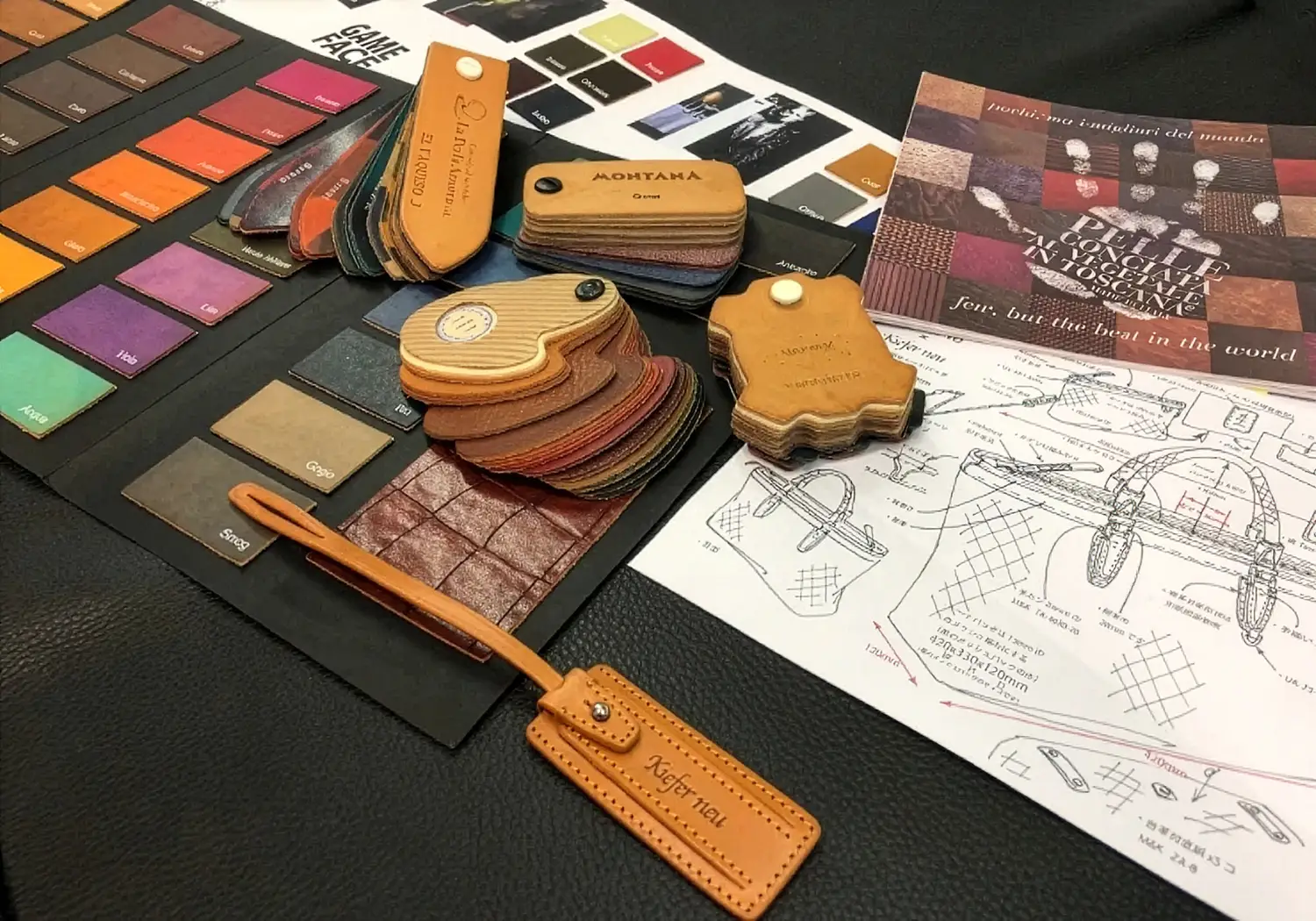 以来、向井氏はレザーの本場イタリアをたびたび訪れ、グローバルな視点を取り入れながら色の魅力を探求。その成果が、現代のビジネススタイルにアクセントを添えるブルーやレッドのカラーであり、ステッチやコバに施された配色といった細部の遊び心です。決して派手ではない。しかし、わかる人には伝わる。そんな確かな“存在感”をたたえたアイテムが揃っています。