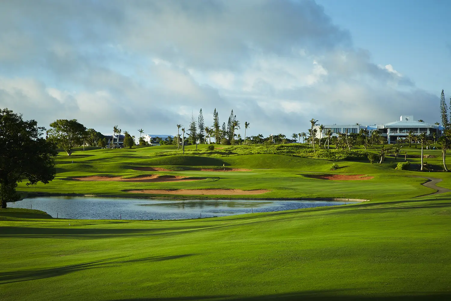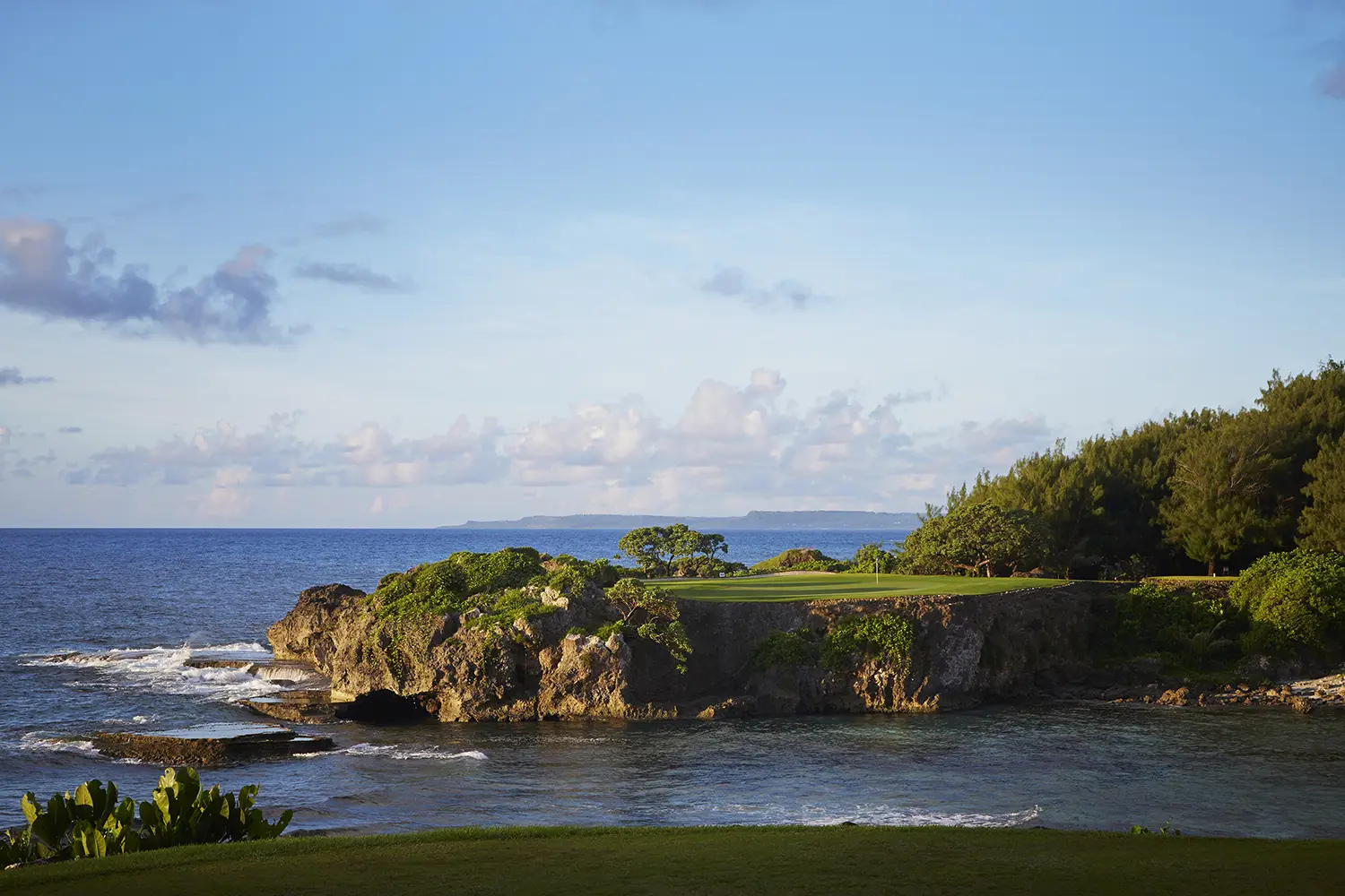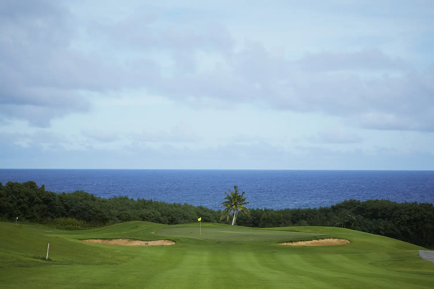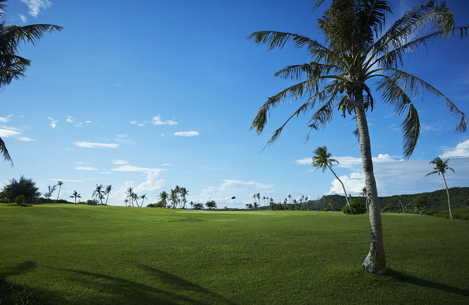全米ゴルフ協会によって正式に承認された同コースは、東・西・北の3コース全27ホールから成るグアムを代表するトーナメントコース。東・西コースは距離がありフェアウェイも広く、思い切りよく攻められますが、北コースは9ホール中6ホールが池絡み。ショットの精度とコースマネジメントが問われる難コースです。ただし、3コースともにOBエリアは少なく、気持ちよくプレーすることができます。