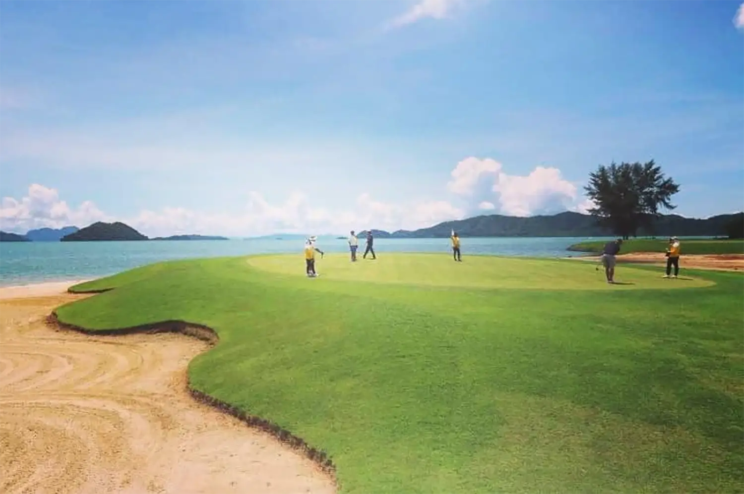 空港に近い島北部に広がり、日本人ゴルフコース設計家・加藤嘉一がデザインした「ブルーキャニオンカントリークラブ」では、ツアー4日目にプレー。アンダマン海を見下ろす丘陵地に位置し、「キャニオンコース」と「レイクコース」から成る36ホールです。キャニオンコースは、かつて欧州ツアー「ジョニー・ウォーカー・クラシック」の舞台となったトーナメントコースで、1998年の同大会ではタイガー・ウッズが優勝しました。レイクコースは、18ホール中17ホールが水絡みというレイアウト。スリリングなプレーが楽しめます。