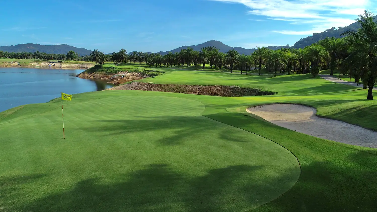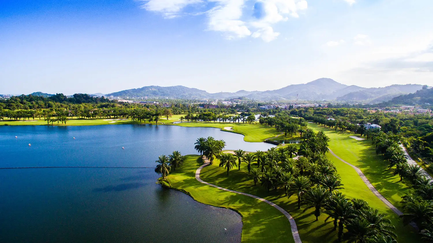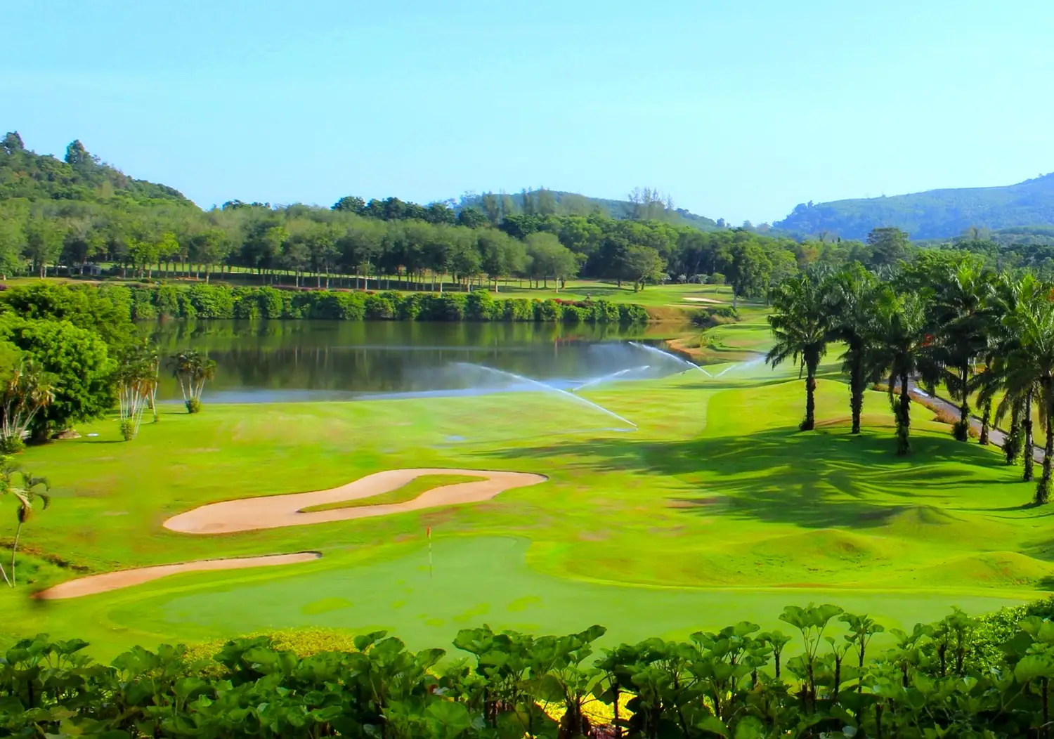 ツアー3日目にプレーするのが、ホテルからクルマで約20分の「ロックパームゴルフクラブ」。広大な敷地にゆったりレイアウトされた18ホールは、海外のゲストだけでなく現地のゴルファーにも人気があるリゾートコースです。湖を中心に広がるアウトコースと、山々の裾野に展開するインコースから成り、山地が多いプーケット島らしい豊かな自然を活かした設計。コースの随所には、1万本ともいわれるヤシの木が立ち並び、南国情緒あふれる美しいコースです。
