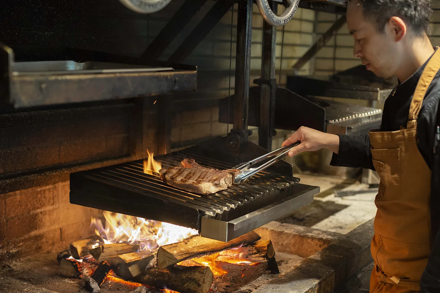 ・薪火料理が堪能できるレストラン。「リバーサイド・キッチン&バー」では、近隣の地魚や足柄牛、野菜を中心とした鮮度のよい食材を使った料理を楽しめる。