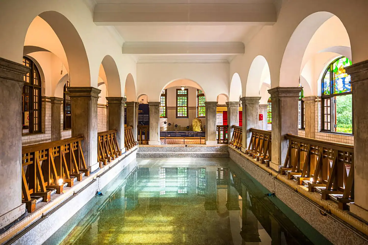 台北中心部からMRT淡水信義線で新北投駅まで約40分(北投駅で新北投支線に乗り換え)。都市の喧噪を離れた北投(ベイトウ)は、長い歴史を誇る台湾屈指の温泉郷です。その最大の特徴は、主に青硫黄泉(青磺泉)と白硫黄泉(白磺泉)という異なる泉質をひとつのエリアで楽しめること。青磺泉は世界でも珍しい放射能泉の一種で、体を芯から温めるほか新陳代謝を促す効果があり、一方、白硫泉は美肌効果や神経痛、リウマチなどによいとされています。