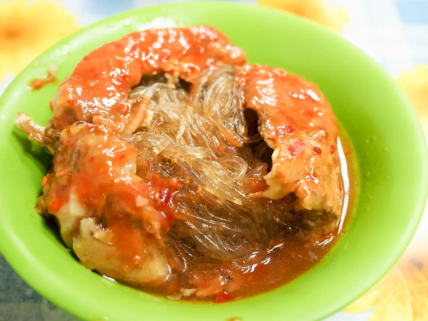 活気ある淡水老街(ダンシュイラオジエ)を歩いていると目につくのが、地元名物のさまざまなストリートフードです。なかでも「阿給(アーゲイ)」は淡水発祥で、油揚げの中に春雨を詰め、魚のすり身で口を閉じて蒸し、甘辛いタレをかけて食す一品。噛めば素朴でどこか懐かしい味わいが口の中に広がります。