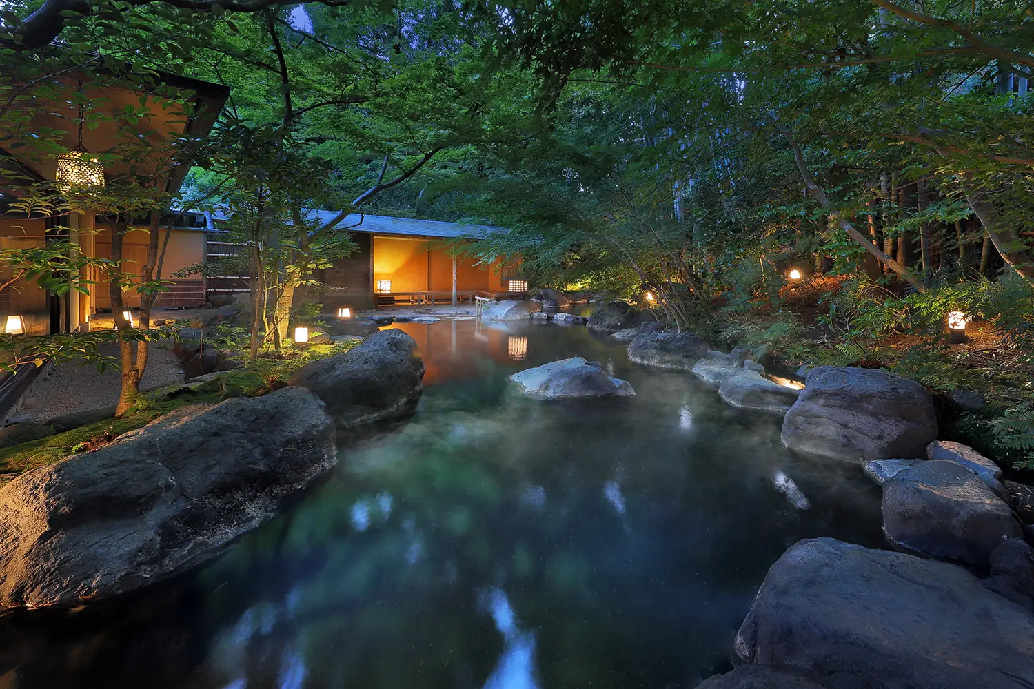 客室の風呂だけでも十分に満足できる「柳生の庄」ですが、やはり開放的な大露天風呂に浸かる醍醐味は格別です。「武蔵の湯」と「つうの湯」。かつて剣の道を歩んだ創業者に名付けられたふたつの大露天風呂は、毎日24時に男女が入れ替わるため、滞在中に両方を楽しむことができるのも嬉しいところ。