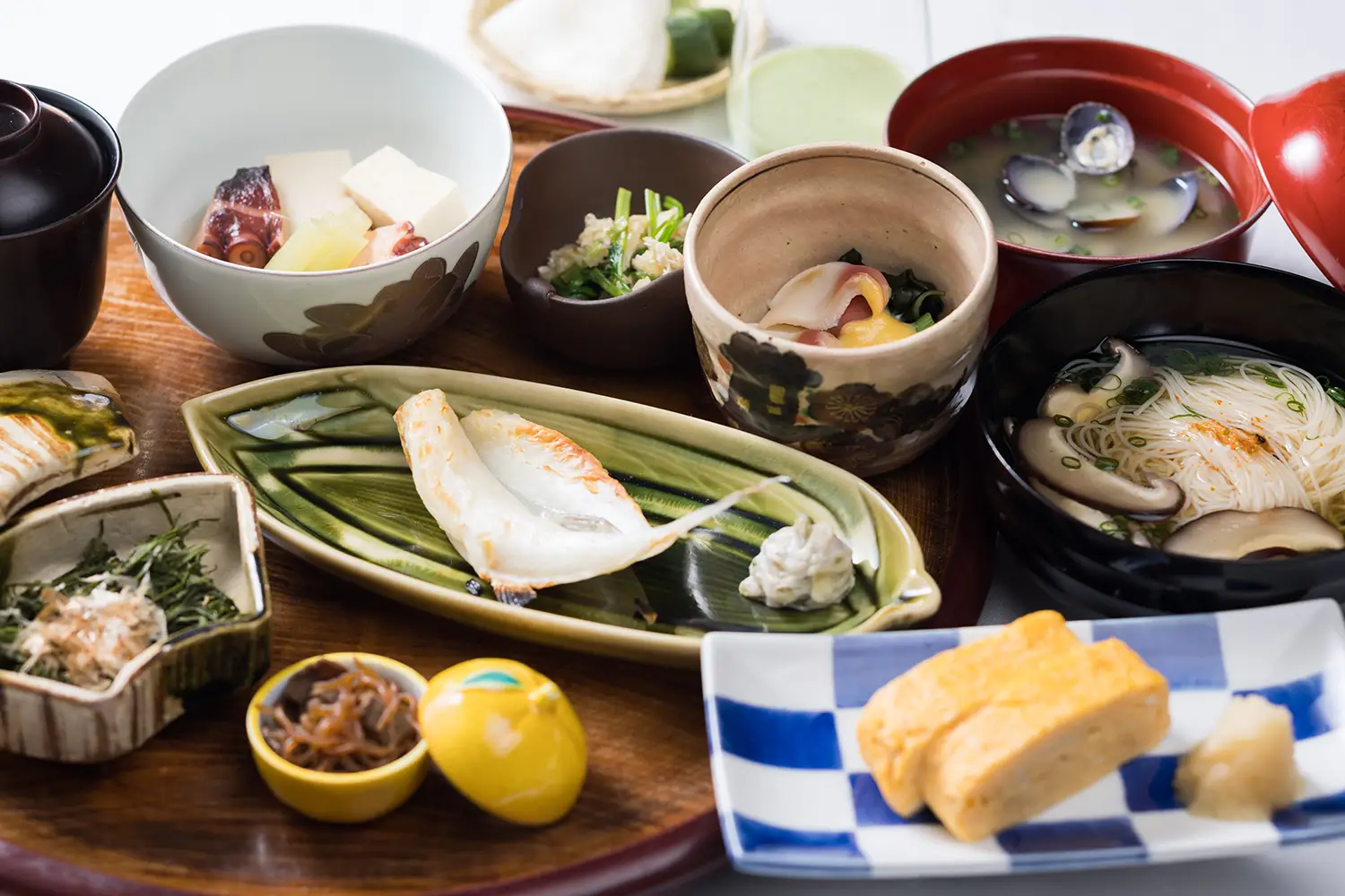 また夕食はもちろん、朝食も部屋出しという贅沢さ。加えて朝食の味噌汁は、「お客さまにできたてを召し上がっていただくため」に客室で仕上げるという、創業以来の徹底したこだわりが光ります。朝の清廉な空気のなか、部屋の窓から庭園を眺めつつ、芳醇な味噌の香りに包まれていただく朝食は、新しい日の始まりを豊かに彩ってくれるはずです。