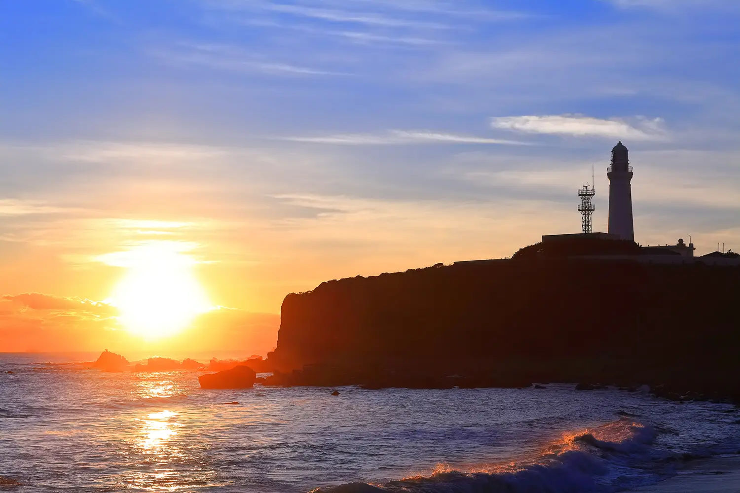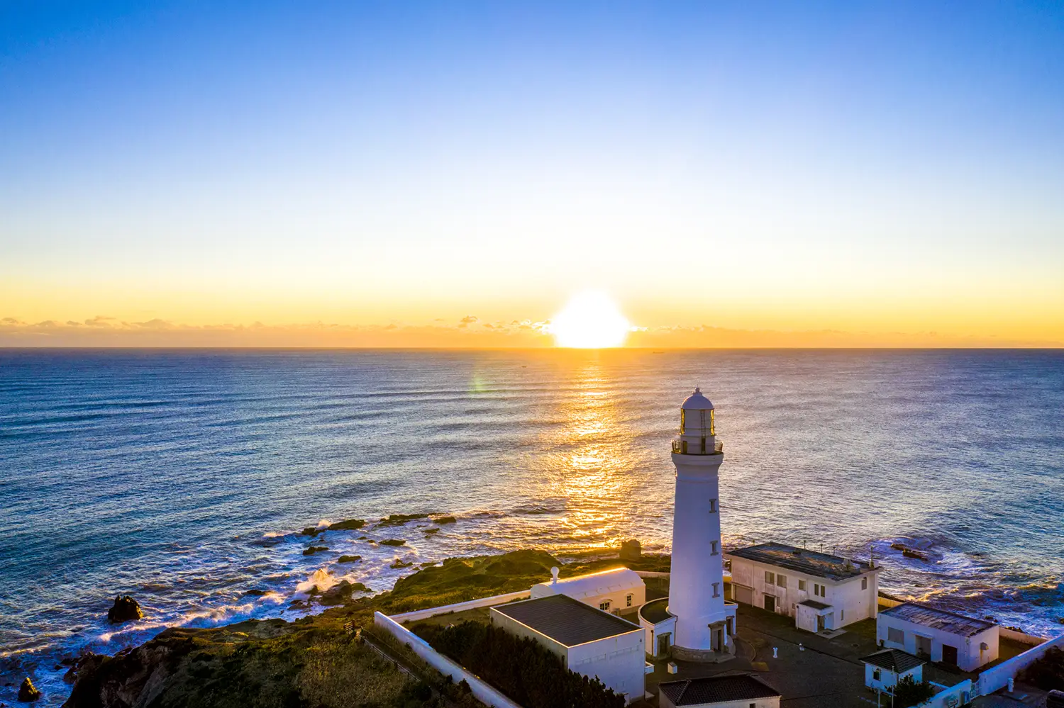 関東最東端に位置する犬吠埼は、山頂や離島を除けば日本でもっとも早く初日の出を拝める場所として知られています。地軸の傾きの関係で、元日前後の約10日間は北海道・納沙布岬よりも早く日の出を迎えるという特別な地。白亜の灯台と太平洋の大海原が織りなす景観は圧巻で、毎年約6万人が訪れる人気スポットです。近隣には「犬吠埼温泉」があり、絶景を望むホテルも充実。新鮮な海の幸も楽しめます。