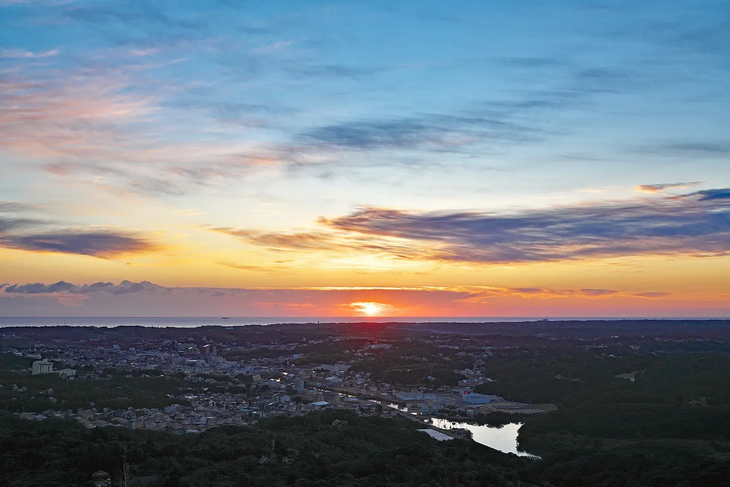 一方で、山の高台から拝むご来光もまた格別です。標高の高い展望台や山頂では、街並みや湖、遠くの海を眼下に、連なる山々の向こうから昇る太陽を望むことができます。