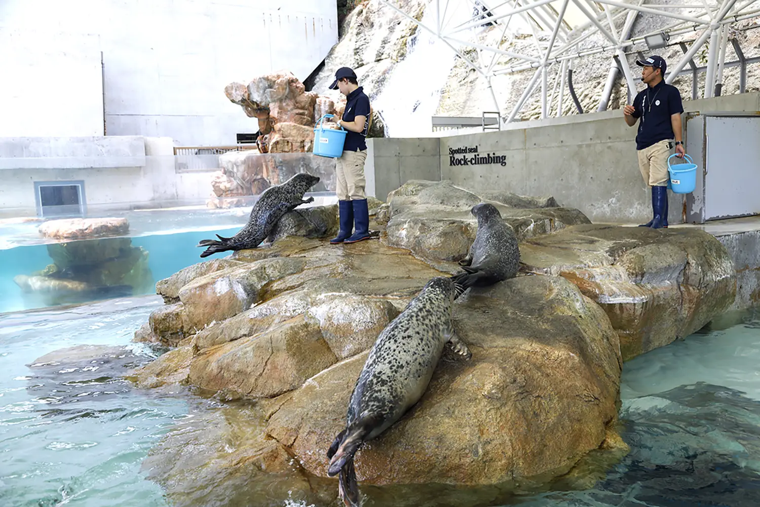 ここでの体験は、観るだけにとどまりません。潮の干満を演出したプールで行われる「アザラシのロッククライミング」など、海獣たちの驚くべき身体能力や生態の特徴を、発見と驚きをもって知ることもできます。