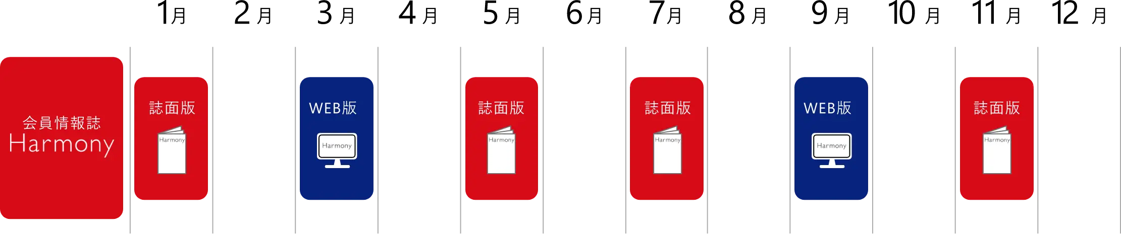 会員情報誌 Harmonyは、年6回発刊(誌面版4回、WEB版2回)しています。